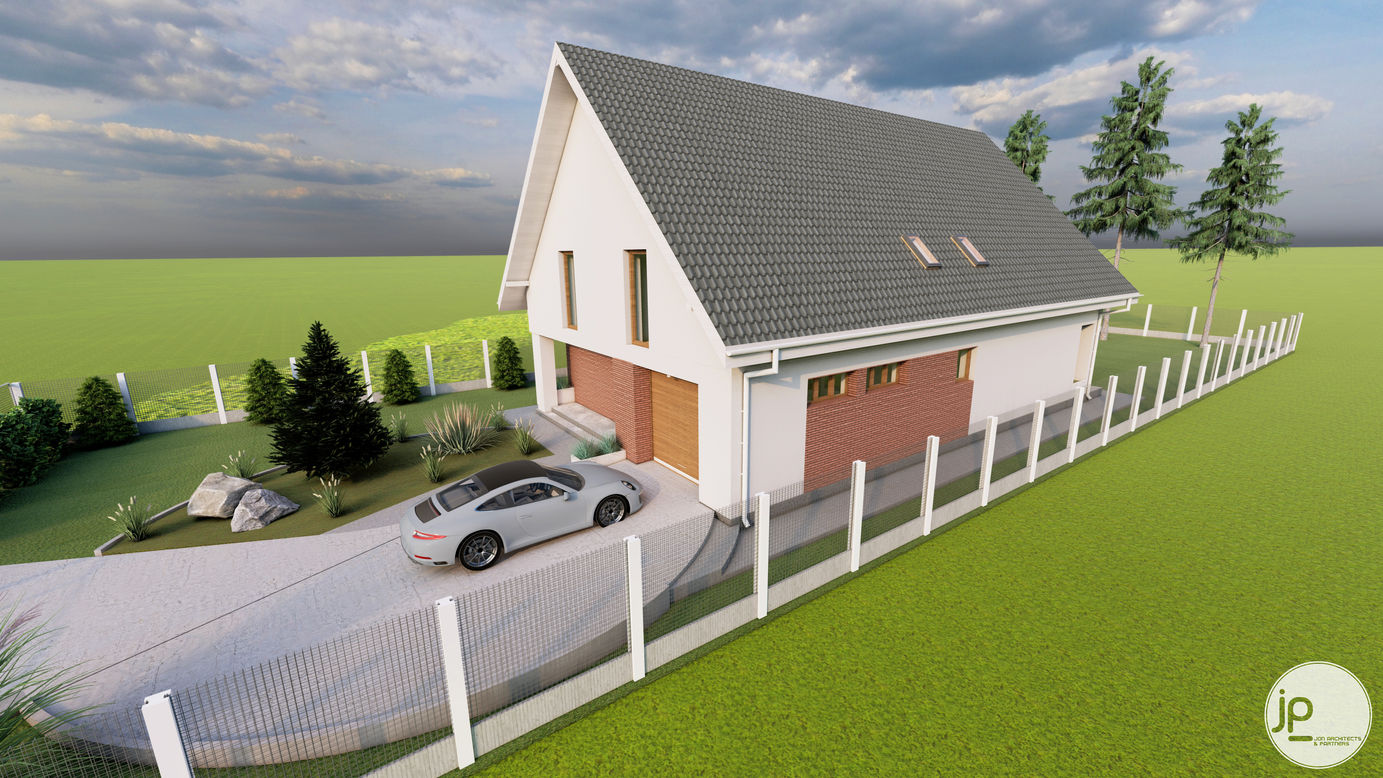 Prin datele de temă, beneficiarul dorit o locuință dispusă pe două niveluri, parter și mansardă.
